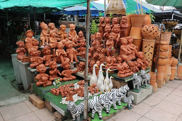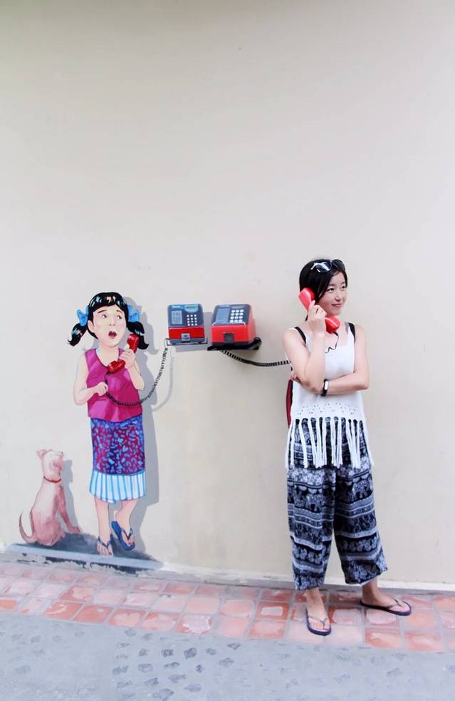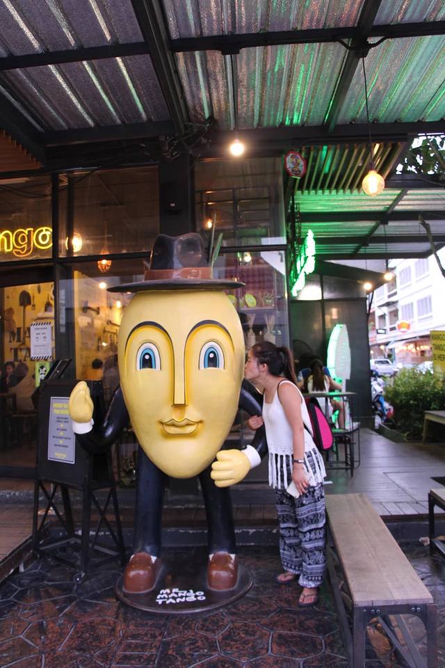 整个街区里汇集了很多风格的建筑,有欧式的、有传统东南亚风格的,街道上时不时的还会出现泰国人最信仰的四面佛。但是,最吸引人眼球的还是很多卡通造型的彩色雕塑,它们都以所属店家的主题为设计灵感。