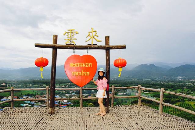 下一站云来观景台,稍稍远一点,骑摩托车上云来观景台真的是靠勇气,感觉那个坡度太陡峭,稍稍一松懈就容易滚下去,一路加着油门冲上去的,边加油边喊,冲到上面忘记减速,差点撞上这个歪果仁,他对我竖了大拇指,突然感觉自己棒棒的。