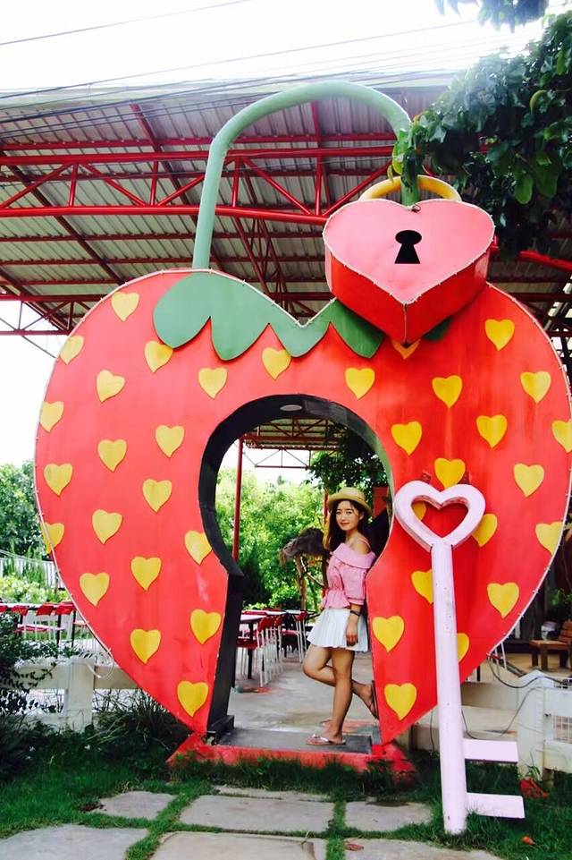 草莓园中有不少有关草莓主题的小雕塑、小建筑,像是童话故事里的小镇,适合小情侣们来拍婚纱照,十分小清新的地方,这里除了照相以外就是照相,因为在这里照出来的相片实在是美,小清新风格。