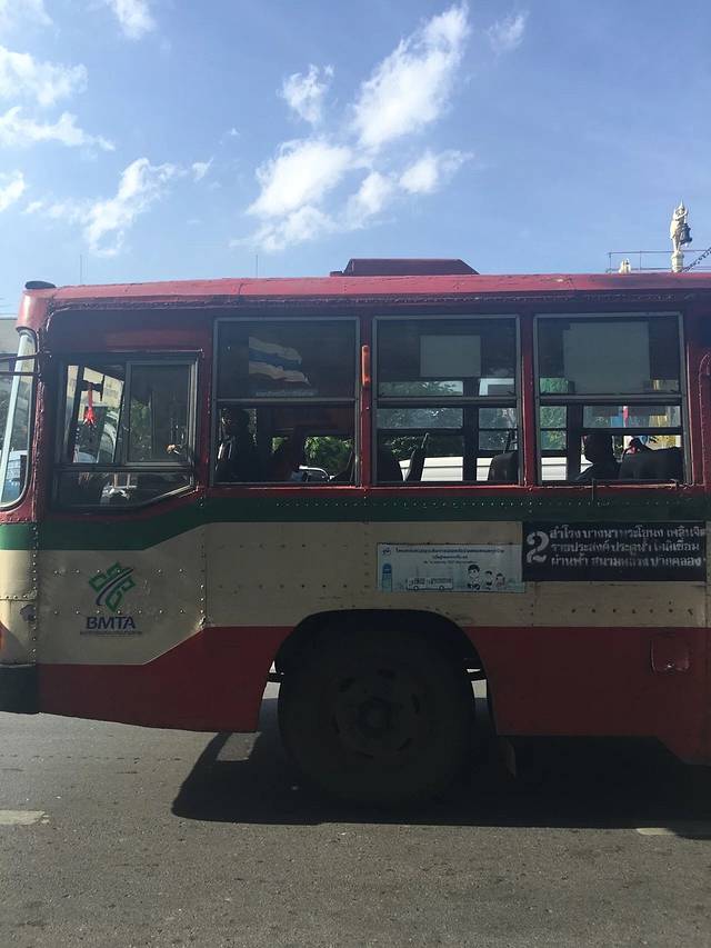 到达曼谷,但是离考山路还是很远,二十多公里,还是定了那家考山路附近的(考山伊姆加青年旅馆)没有选择打车,使用地图寻找了一条公交路线,在站点等了好久,差不多半个小时,附近一直有一个流浪汉长得跟犀利哥一样,裤子撕开像旗袍一样开叉的,我边等车边瞄着他,只敢偷偷看他,终于赶上了2路汽车,上车没有投币箱,售票员没有找我售票。
