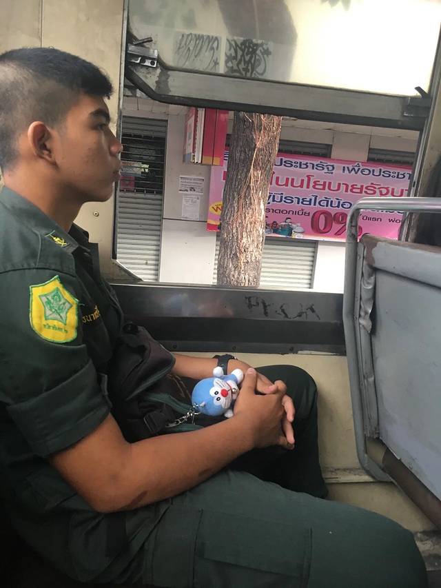 话说我和这个泰国学生要不要这么巧,我一天中两次在公交车上遇到他,多亏了书包上的多拉A梦,我看着很眼熟,真是有缘啊!