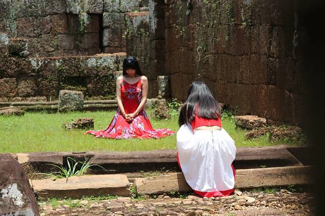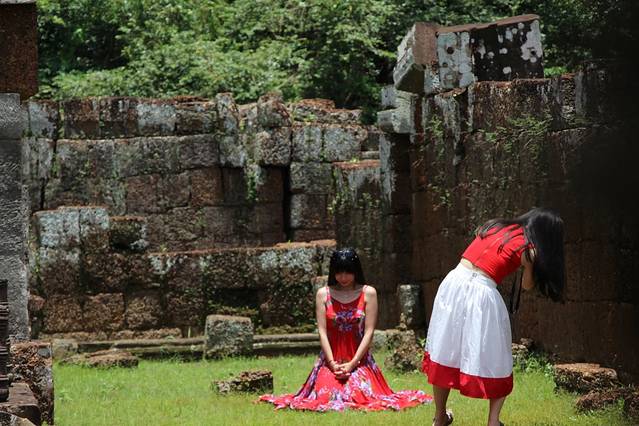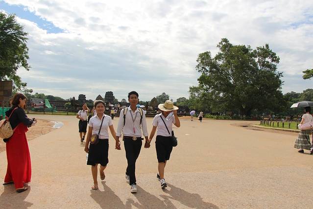看见一群学生从吴哥寺出来,这三个学生,我最好奇,无限好奇,自己脑补了一遍各种情形。
