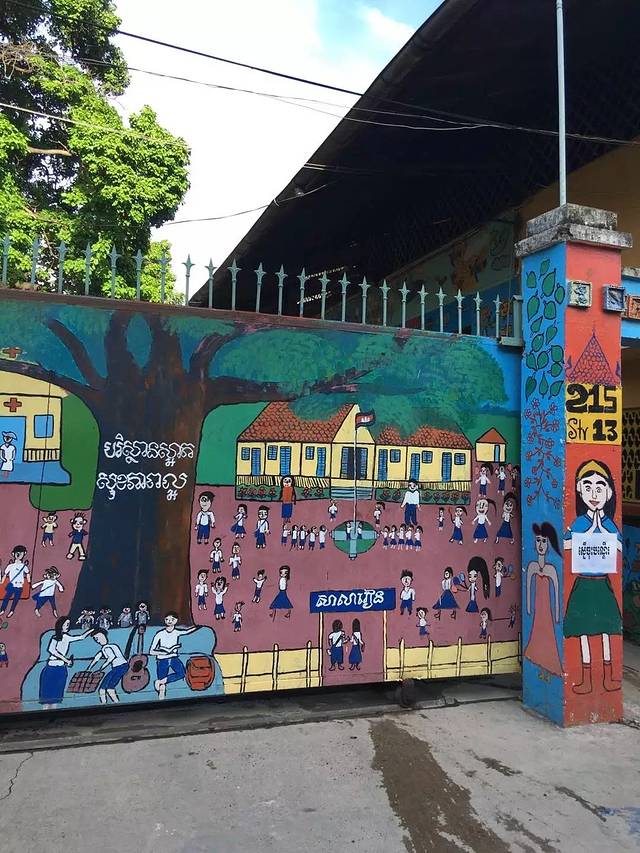 路过金边的幼儿园,感觉这个墙面设计挺好、有特色。