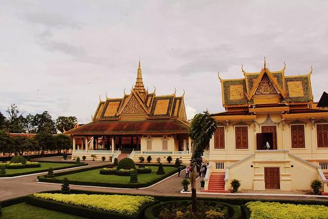 走在皇宫金碧辉煌的宫殿时, 你可以想象远在百公里之外有个吴哥城, 是这个国家曾经有的文明, 而在1432年吴哥文明因为遭受暹罗人入侵而没落, 最后终于迁都而在金边重新建立起他们的家园、