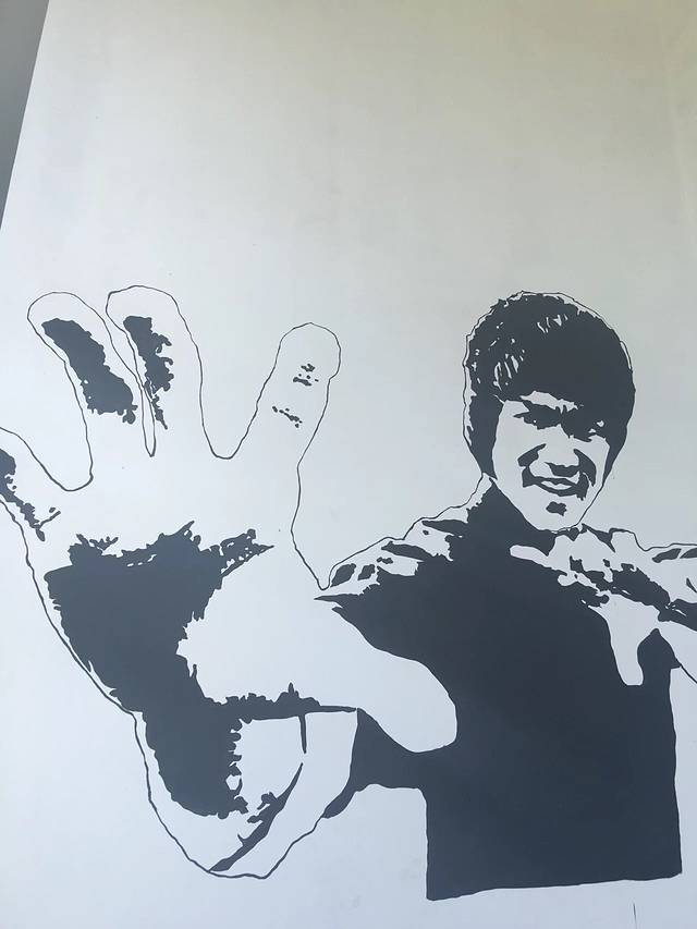 早上出门看见那个满身都是纹身的外国人正在画李小龙,投影仪到墙上,大概有三天时间每次从吴哥窟回来都能看见正在作画,他只是一个旅行者,不是青旅的老板,我知道了李小龙应该是所有外国人心目中的英雄,青旅的墙上写着各国语言的欢迎你,但是旁边就有这么一幅人像画,是我们中国的李小龙。