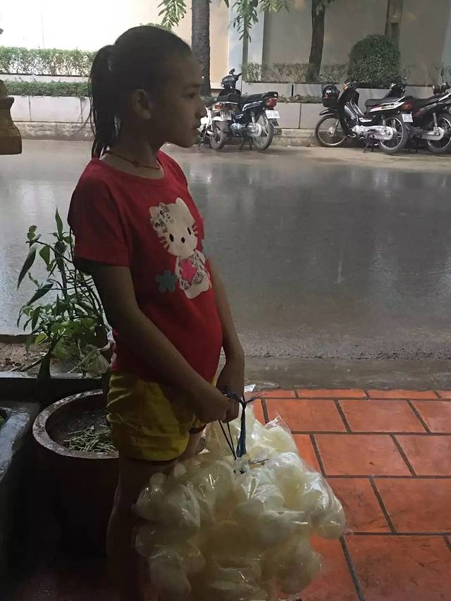 又是大雨,同样在雨中的孩子是在卖明信片