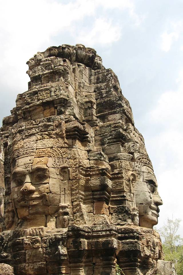 巴戎寺最著名的是刻在塔身的巨大的四面观音像,象征着当时高棉王国的强盛。最著名的高棉的微笑