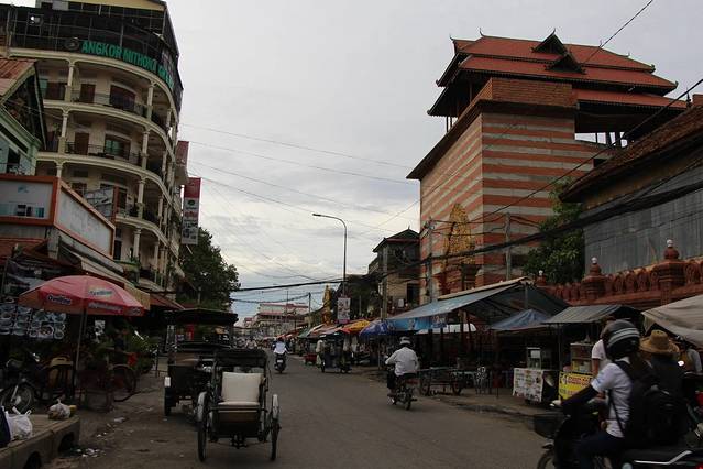 下午三点钟到达暹粒,外面下着雨,一群突突车司机围过来,我把泳池派对青年旅舍的地址给他们看了看,要我三美金,我知道距离三公里,这么贵,我选择背着我的背包走过去,刚到达暹粒,我淋着雨走在去往青旅的路上,心理活动是丰富的,不是我有受苦心理,只是觉得每个地方都想吃些苦,不是不思考的旅行,走在异国他乡的路上,你能想很多事、