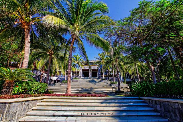 第二天我们去蹭大东海的酒店,第一站是在猫途鹰网上三亚排名第一的酒店--文华东方,之所以排名第一,那肯定是有原因的,最重要的是,它非常私密,不让外面的人进入!我之所以蹭到了,是因为我厚颜无耻的表示我要去餐厅用餐,虽然那时才早上十点……