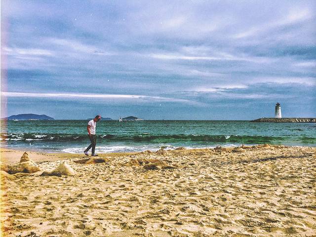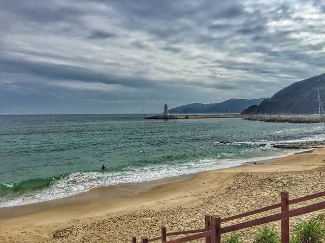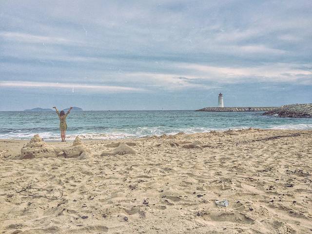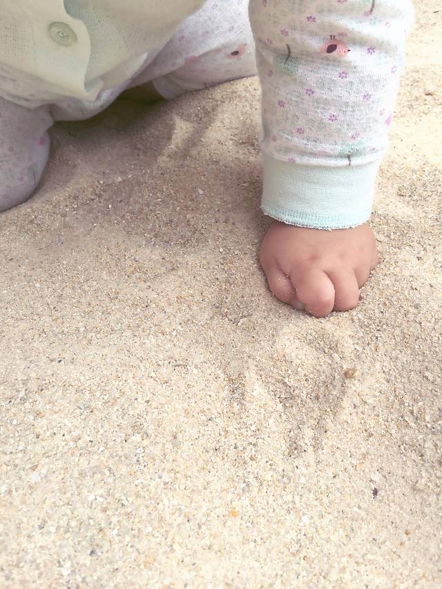 今天又是多云,带肥羊去海边踏了一下沙,她开心得直笑!