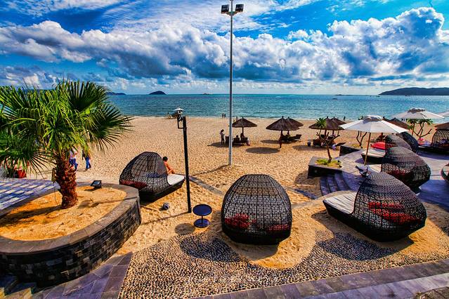金茂丽思卡尔顿,酒店很不错,沙滩很一般很小!!酒店里面还有各种奢侈品牌店!!