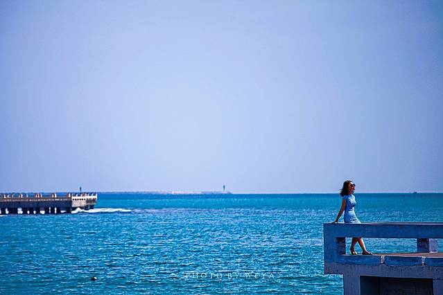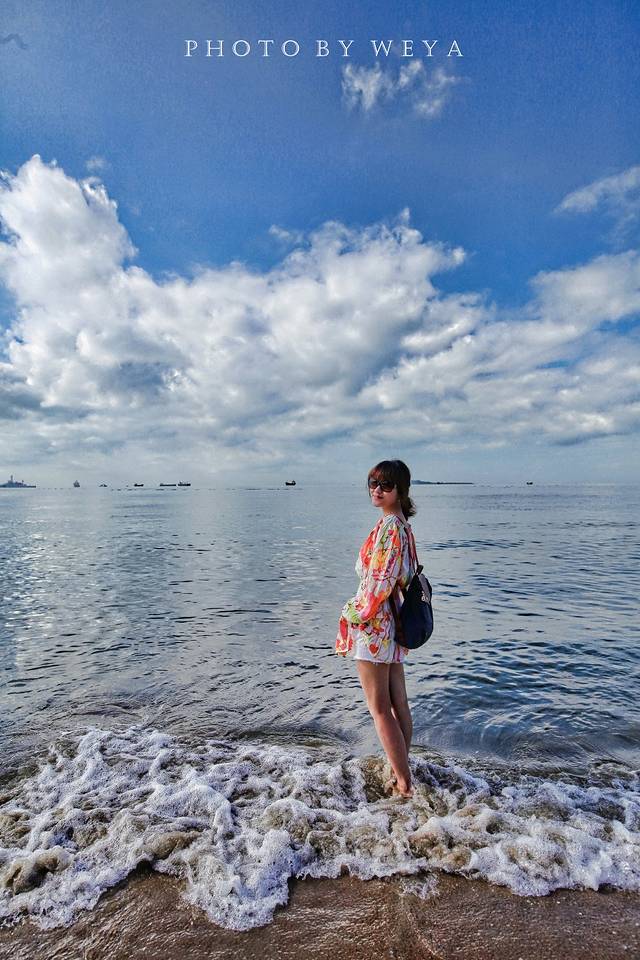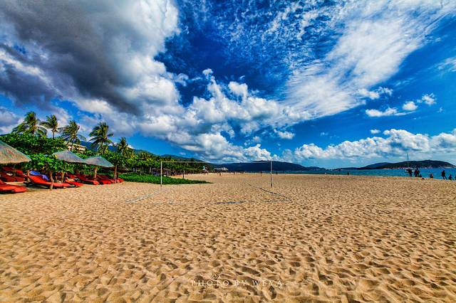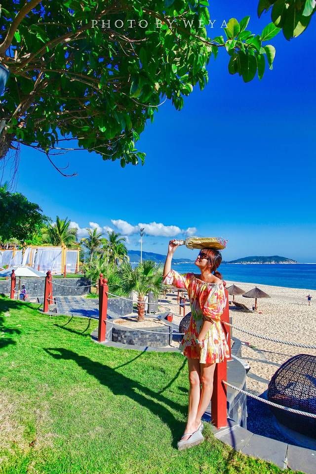 我的化妆师兼模特兼助理--二老婆也来三亚跟我们一起度假了,所以又租了车出去玩,不过最近三亚的人越来越多了,导致100多一天的小车非常紧俏,我朋友那家便宜车型全部租出去了,我在租房楼下找了几个旅行社都没有100多一天的车了,只能租了200块一天的,拿到一看,骐达,跟我自己的车一样....好吧,开得无比顺手!!早上出门天气很好,所以又先去三亚湾照一照,感觉已经成惯例了!!