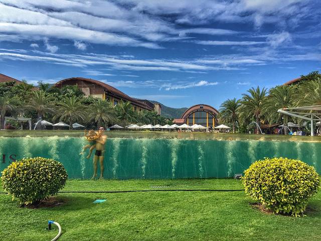 唯一美中不足的,是游泳池的水不是蓝色,而是绿色,感觉不太舒服!