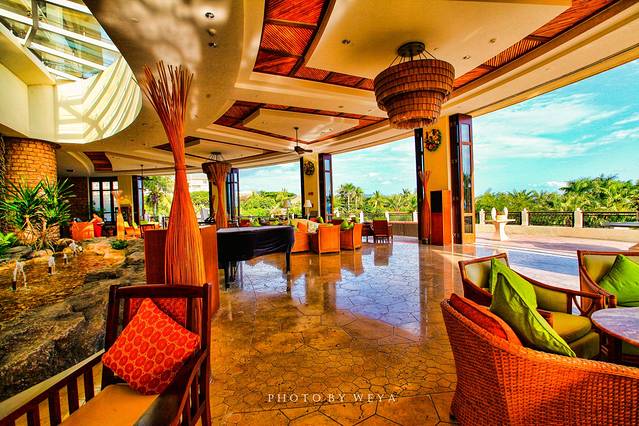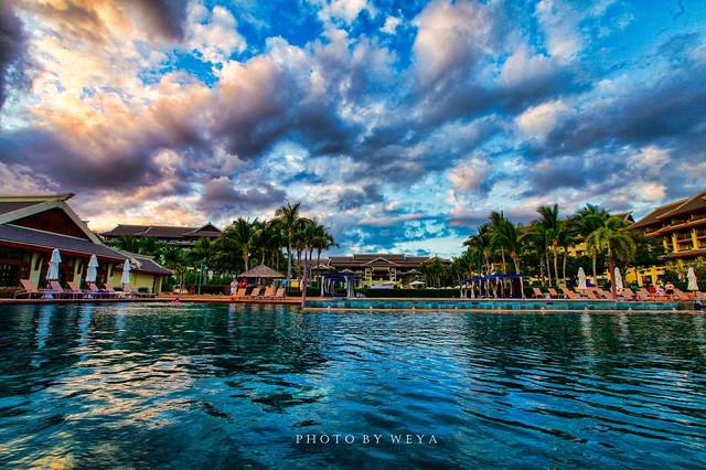 租了个车车自驾到海棠湾,继续蹭酒店!首先蹭的是凯宾斯基!个人觉得凯宾斯基相当不错,环境很漂亮,有独栋小别墅,也有池畔房!沙滩很好,但是海棠湾浪很大,不能下海!不过有经济条件的朋友真心可以考虑这里!