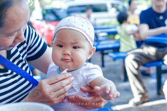 我们喝粥她也要吃!!吃得满嘴是饭粒!