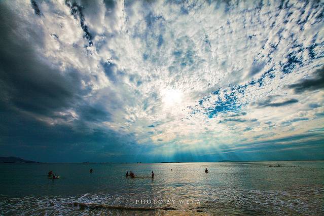 三亚终于阴天了,扛了脚架出去自拍了几张....但感觉还是太阴郁了点!还是想念有天堂光的三亚湾!!
