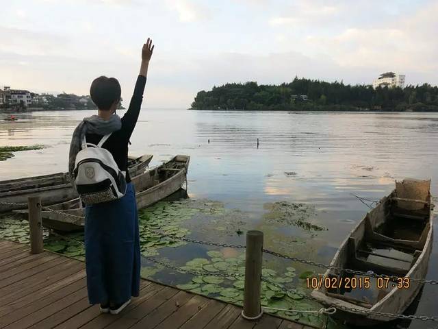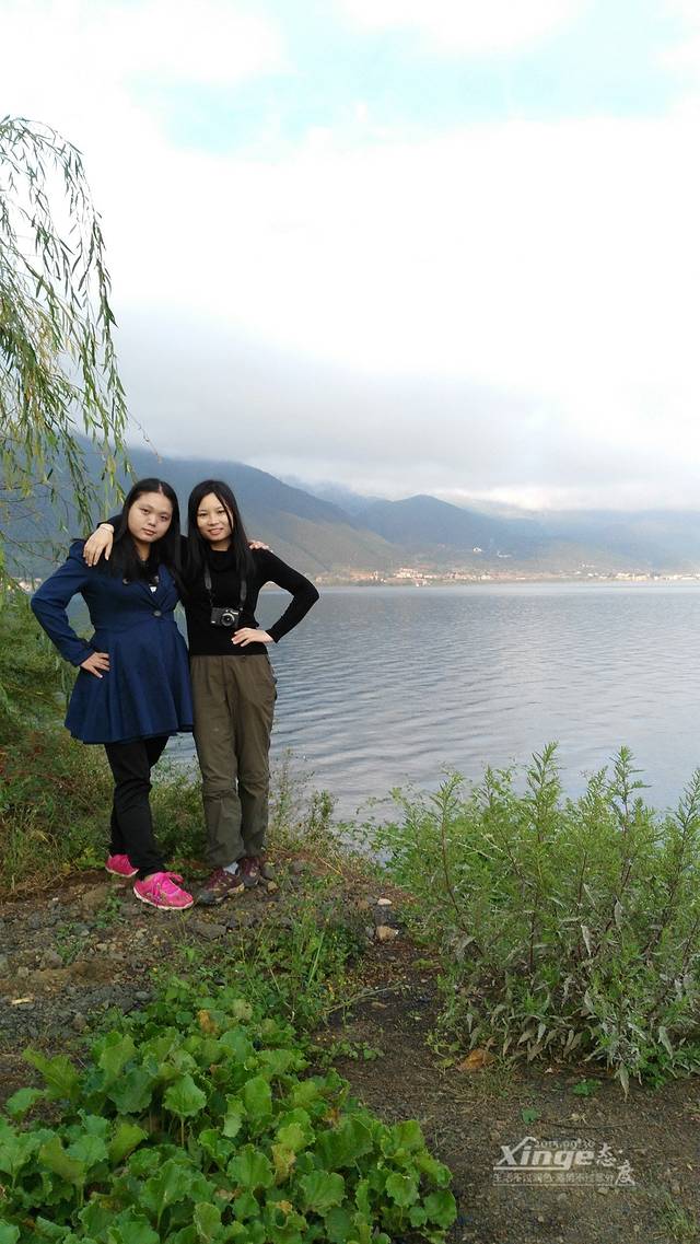 我觉得我们也是很精神,五点多就都起来了,天未亮,人未起的。在镇上到处逛逛的,路也找不到最后硬是找人问才跑到洱海边,找了个早餐店吃东西。可惜天气不大好,瞎逛了几个小时。然后才想起租电动车绕洱海。