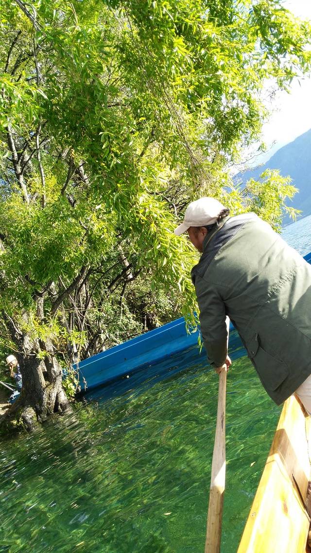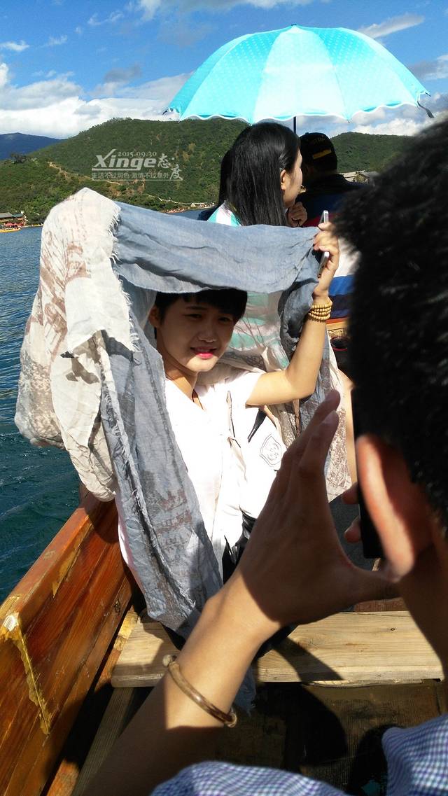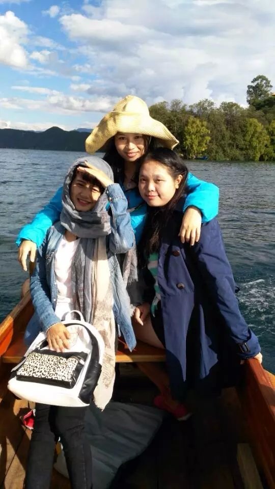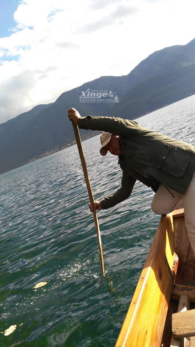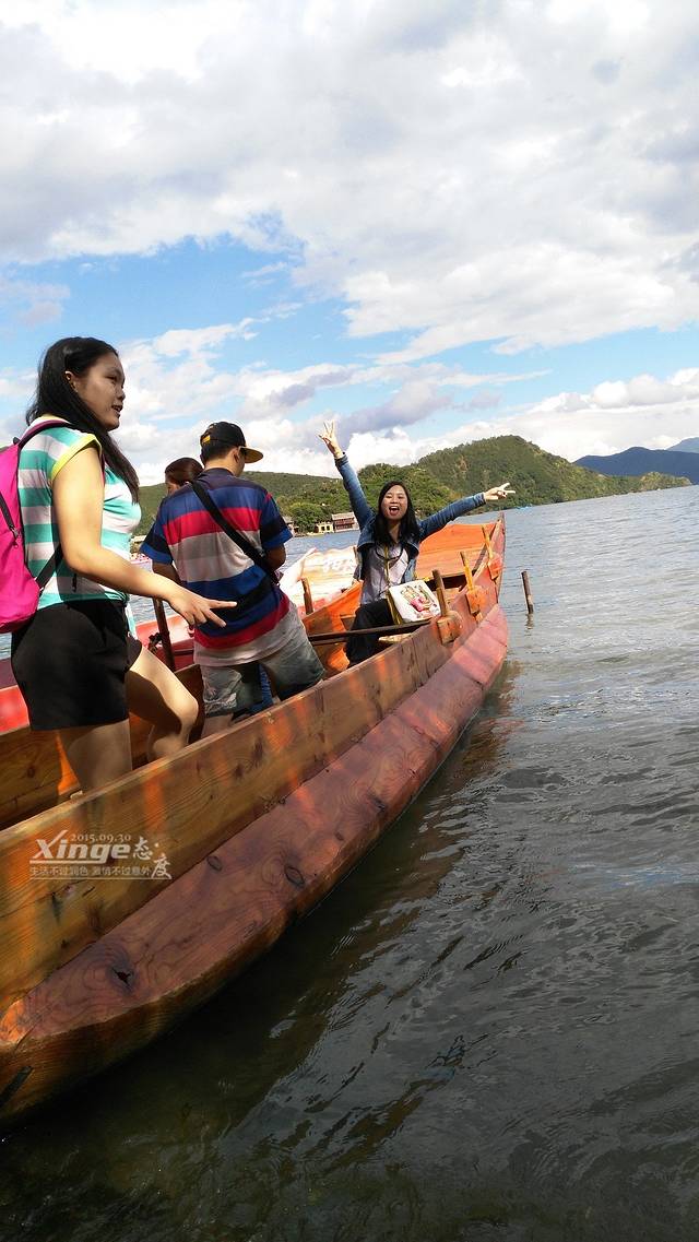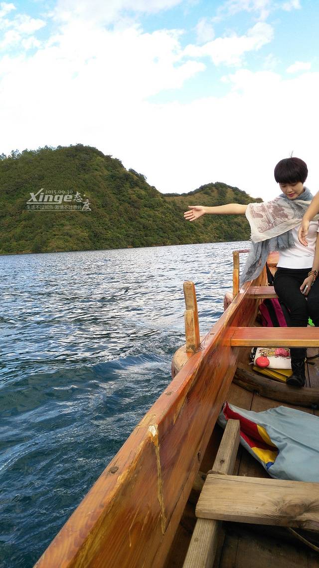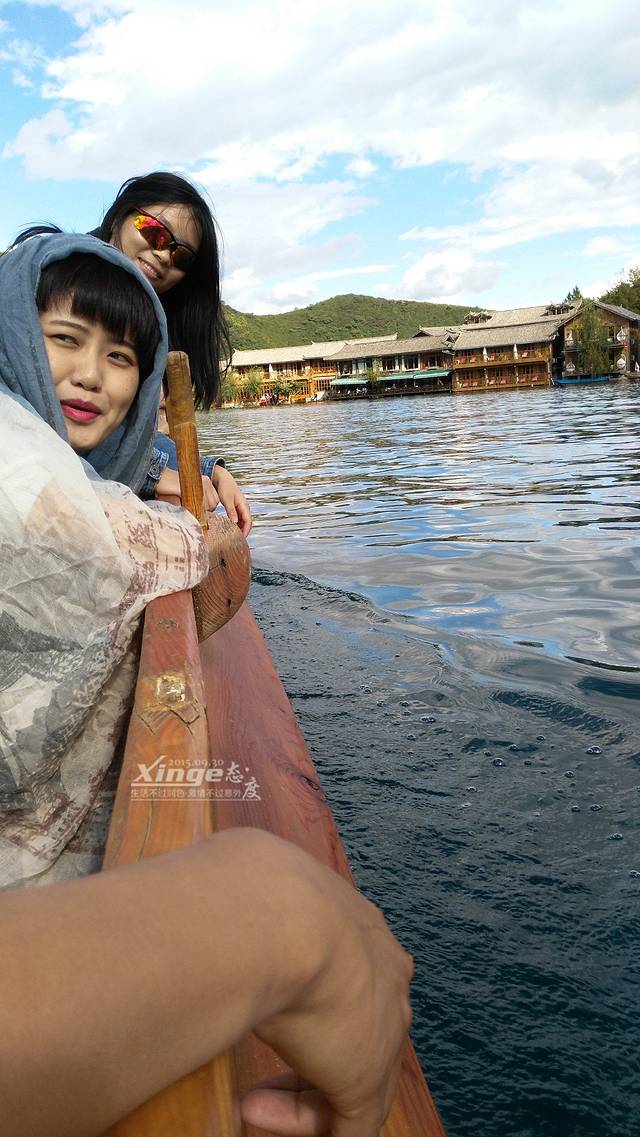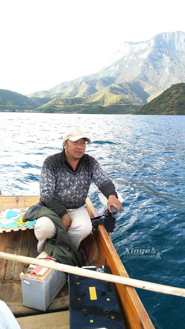 来回二三个钟,船家跟我们聊了好多好多,多得我都记不得了,他是本地摩梭人!由于早晚温差大,在湖面时我们已经感觉到好冷,逼比小叶只穿了短衣短裤,冷得不要不要的。