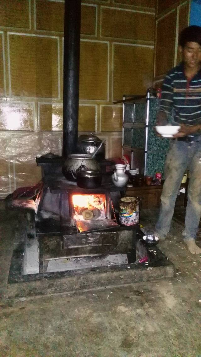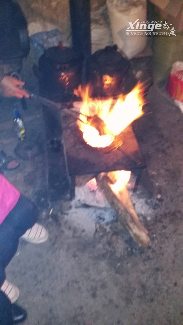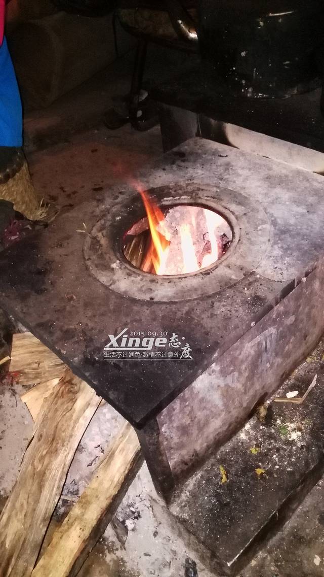 这里没有电,水也很少。我们在围着火炉坐住边聊天边休息,主人家为我们备饭菜中。