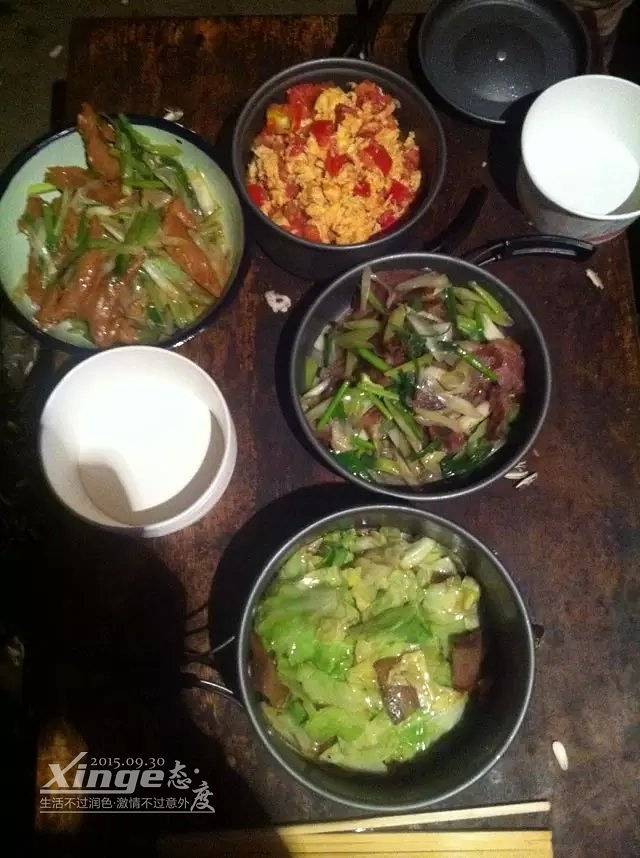点了一桌子菜,必须有酒有肉啊,,大家饿疯了快,加上有点高反