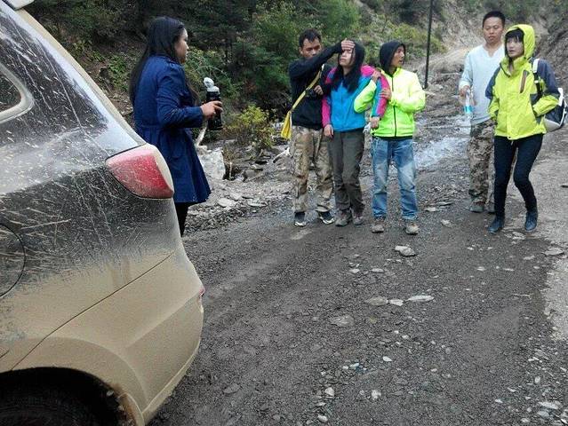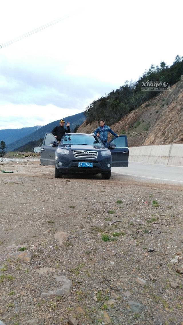 也不知道等了多少小时,终于看到一部三菱车开着大灯过来,原来天都快黑了(中途我们只要看到一个车便以为是飞雪回来了,望眼欲穿呐)