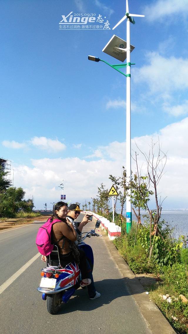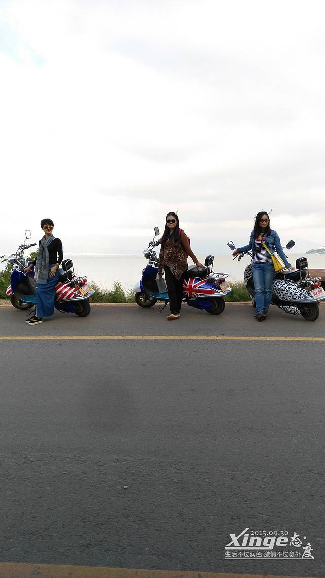 还有人不会骑电动车,哈哈,,准备绕洱海咯,天气也立马放晴了;之后的天气一直是晴天。