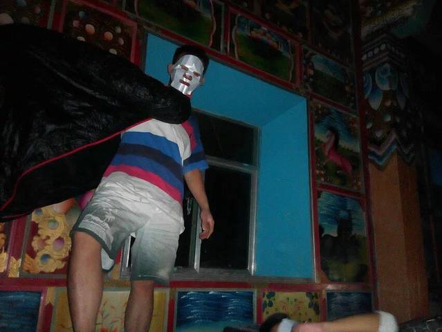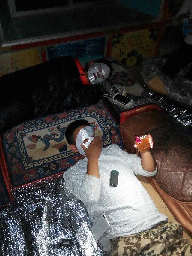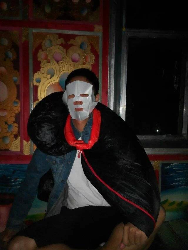 为了明早起来赶路,我们不一会就下楼睡觉了,一进屋发现,真是床多被子多房间大呐,室内的修饰也精美,大家不由得又嘻闹起来了,请看下面几个逗比表演。