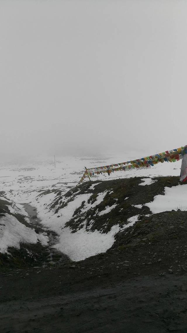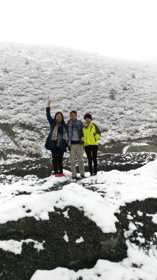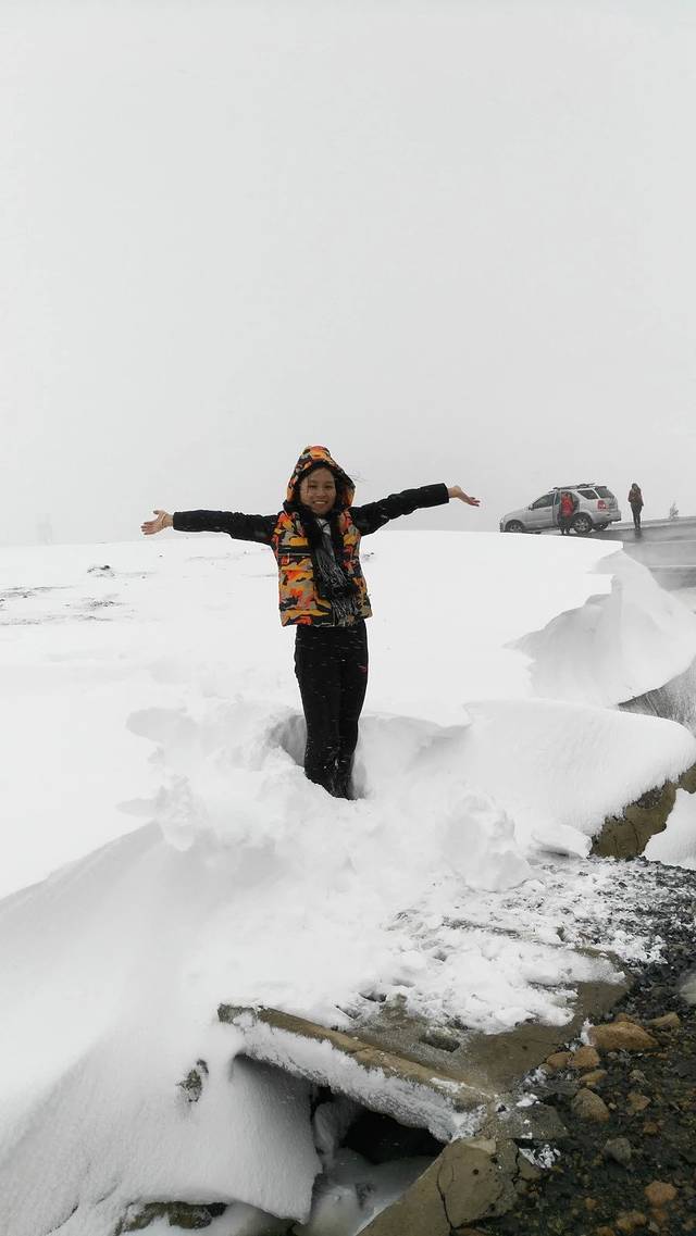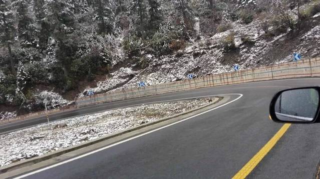 刚出城不久,就经过一个隧道我才想起来,垭口慢慢成为过去式了,就二年不到的时光,川藏线上的很多垭口将成为历史了。几小时后我们感觉到寒冷了,突然发现有白点飘过来了,嗷呜,真的下雪了吗,大家激动的立马开窗下,过一会下车玩耍,真的好冷。我们再接着开时,发现对面来的车,车顶都是一片片白雪,想象得到前方下着大雪或昨晚就下了,不到半小时我们感觉穿越了一样,到处冰天雪地的,车上有没见过雪的欢乐青年,表在意哈,哈哈,,,,,