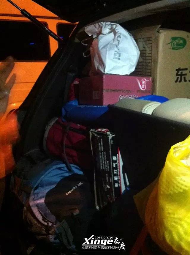 九月二十九号,直到上午我们的团队才知道空降了美女一枚,芬芬是也!大家假期为了避开高峰期,特意提前到29号出发;下午四点取车然后世界之窗集合;19:30正式出发了;龙女跟山水已经备好了大堆零售跟补齐,满满的大箱子;一路顺畅出发鸟。