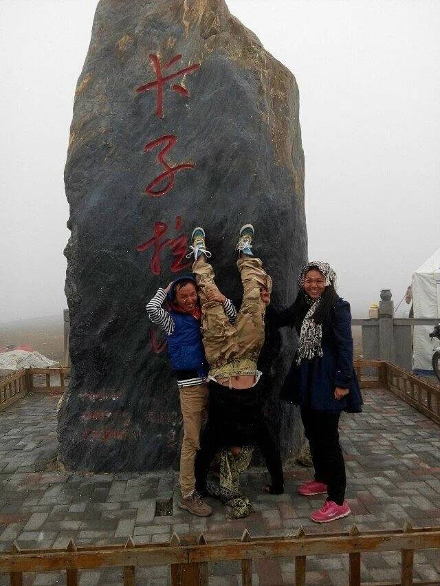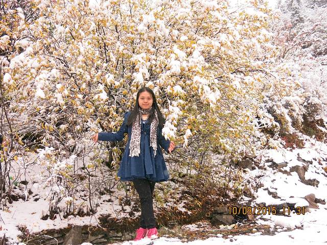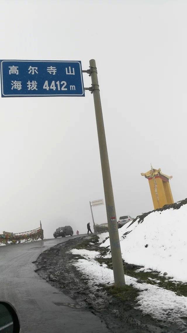 经过卡子拉山垭口、高尔寺山垭口、折多山垭口每经过垭口大家都会下来疯下,真的很高兴这种状态,也不管工作不工作拉呵呵!当我们下山时,瞬间感觉入秋似的,到处金黄黄的我们跟对面车说下雪了,对方还不相信,这就是大山里的神奇,大自然的变化莫测!