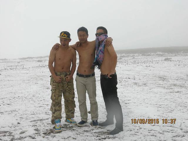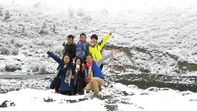 这雪还真下得不小,我们一群人疯了好久,打雪仗、半裸奔、各种蹦哒,大家已经适应高反了,各种不怕冷的