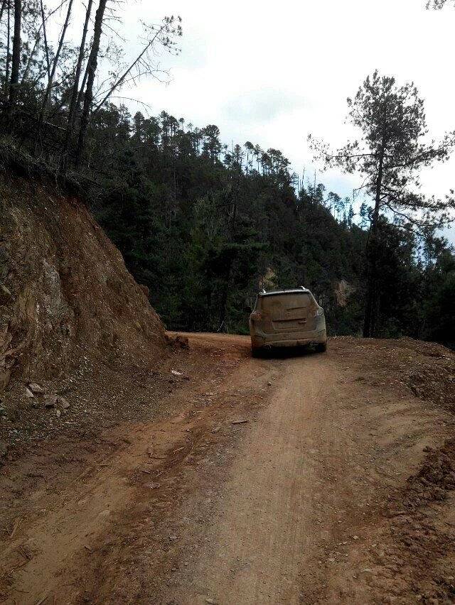 对方好心说让我们跟着他走,然后调头回来(问路这事,还是司机靠谱呀,路人不能全信,当地人不知道路也是很正常的);当到一个上山坡的路时,我们惊当了,根本不相信这里是上转弯路口啊,完全泥土路而且路非常窄只能过一部车,而且看上去不像上山还有村庄的感觉。