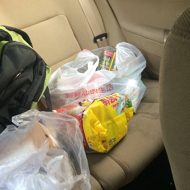 吃的吃的哈哈我们的后座坐不下人了呢。四人座只够两人用呢
