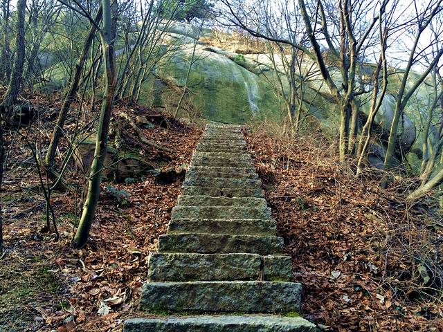 山另一侧的石头小路,在落叶缤纷的铺就下通向未知的远处,随手拍下之后发现像油画一样。