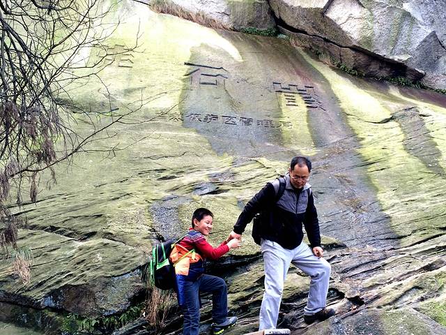 某小朋友非要站在陡石崖上面照相,他爸爸拉他上去时他却又有些畏畏缩缩,顺手抓拍下了这一幕。