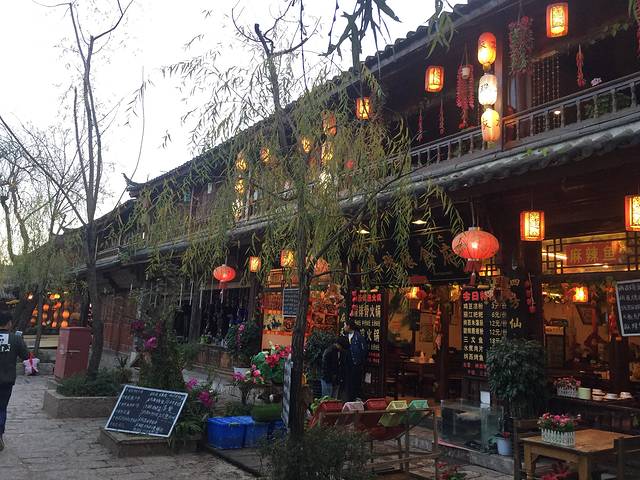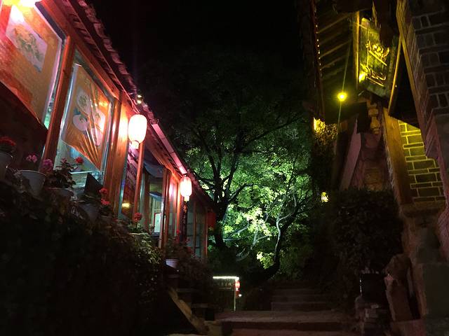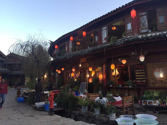 从泸沽湖回来,客栈简单收拾了下,继续逛古镇,今天是在南门附近,对丽江的印象更多一份好感,南门进来的古镇更安静,小资些,尤其是在青春酒吧附近一带,柳树密集,好似庭院深幽处。。。就这样,一直逛到晚上,边逛边吃特别自在,走着走着突然被一阵笛声吸引了,愣愣的听了好久,后来问店里小伙是什么音乐,才知道是“大鱼海棠”,哇~~ 陶笛出来的感觉真好,于是,不由自主的进了这家店,店员很耐心,教了我“一闪一闪亮晶晶。。。”有意思。收了一只12洞的陶笛
