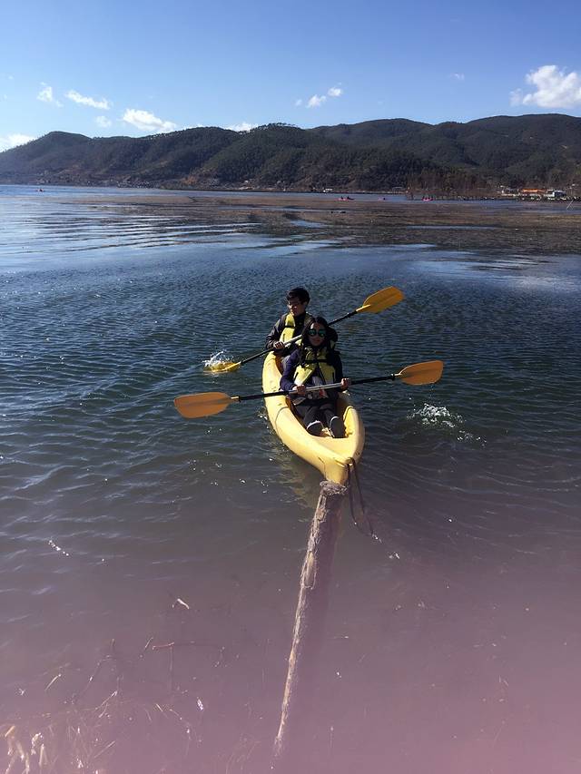 骑完马,直接到达拉市海划船的地方,芦苇丛中,露出一片静谧的湖,明明是湖为什么叫海呢!这里真的是美 很美 非常美,不来肯定后悔,不要道听途说,自己来感受,泛舟湖上的静和缓。荡起双桨,划到湖中央,面朝山水间,一切烦恼抛之脑后,阳光洒下湖面,休息一下发发呆,感觉很好,不急不慢,享受午后的阳光。如果你觉得无聊,不妨和其他船只比赛划行,反正我是赛了,结果裤子湿了。。。。