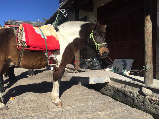 客栈睡到11点,慵懒的阳光晒着。临时起意,去拉市海,比较随性哈。于是网上淘宝拍拉市海一日游78元/人,差不多半天时间吧,骑马划船,无自费,感觉性价比超级高啊,比听说的费用便宜好多,开始有点担心会不会水分多,玩了之后真心觉得物超所值,茶马古道大概一个多小时,路途还是蛮长的,尤其是有段山路非常的崎岖,好舍不得驮我的马儿啊,山路又窄又陡,上坡下坡难度都好大,骑的我一身的汗,真的是不寻常的一种体验啊,听马夫师傅说,以前的人都得用马驮着好多物品行走在这样的路上的,我心里默念,下辈子一定不要做马真是辛苦哇,走完崎岖的山路,又是一路上的蓝天白云,真好,很快就到达拉市海了,真的好舍不得我的马儿啊,多合几张影吧,留个纪念,兴许我们还能有缘再见。