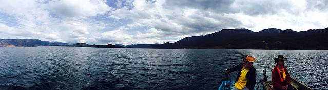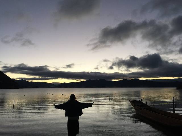 终于要和我多年不见的好友璐璐汇合啦,好开森啊,最期待的人和丽江最期待的地方——泸沽湖,只想说完美!好吧说说泸沽湖,神秘的东方女儿国,摩梭族的走婚制都是让我充满好奇的。也是在丽江当地报的团,可以砍价的,报的300元/人,无自费湖景房。旺季费用估计会double。泸沽湖两日游,要求湖景房!!!湖景房很重要,可以看日出,还有美丽的黎明,所以很重要哈。大体行程是:上午9点出发,高速走现在差不多4小时,中午一顿土鸡火锅(团餐)下午到达泸沽湖鳄鱼岛拍照,然后是坐船到情人滩,坐船的感觉特别好,风吹在脸上,静静的缓缓的,上岸后的情人滩到处是卖苹果的小孩子“几几,我们好辛苦的就买一个吧,好不好” 大风里面拎着苹果袋子叫卖,有点舍不得就买了袋,结果,旁边的小孩子又不高兴了。。。为什么要写这段呢,我觉得他们会留给我们一些思考,其实,静下来想也是,我们比他们要幸福的多,至少不用小小年纪风吹日晒,翻山越岭的上学还有筹集学费,他们的生活更让我们觉得应该珍惜当下。回归正题,情人滩结束后是到里格岛,也就是观泸沽湖最美的地方了,其实我觉得环湖路上的一个位置感觉最好,当天的天气有点阴,这是最遗憾的了,所以拍出来的效果有点不尽人意,不过晚上住的湖景湖真的是赞到爆了,物超所值哈哈哈,一会上图,晚上是参加摩梭族的晚宴,25道菜,里面的猪肉是搁置好几年的,当地特色,一定要尝尝,晚宴结束后就是篝火晚会啦,围着篝火一起舞蹈吧~~~