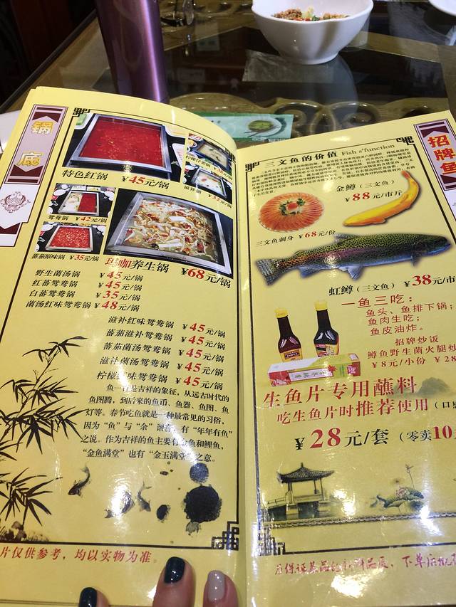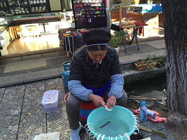 从玉龙雪山回来,开始觅食啦!攻略上的沱江鱼府,让我垂涎三尺啊,于是特意赶到花马街,五点多去的,比较早人还不是很多,先点锅底,再称鱼。比较不合理的是1、酱油芥末另外收费28元;2、秤鱼,把鱼敲死再秤重量。这些都是小插曲!锅底还可以,四川火锅的味道,一会儿鱼上来了,一鱼三吃,一部分生鱼片,一部分油炸,鱼头火锅里面涮。生鱼片其实是虹鳟鱼,淡水鱼,味道着实一般般,和日料店的三文鱼口感味道完全比不了。可能是个人口味吧,还是有点小失望的,毕竟美食是完美旅行的1/3啊。在吃过黑山羊火锅、腊排骨还有三文鱼之后,对丽江美食不抱什么希望了。继续古城逛逛逛买买买,买了可爱的头饰还有珠串,有没有点异域风情,哈哈哈~~