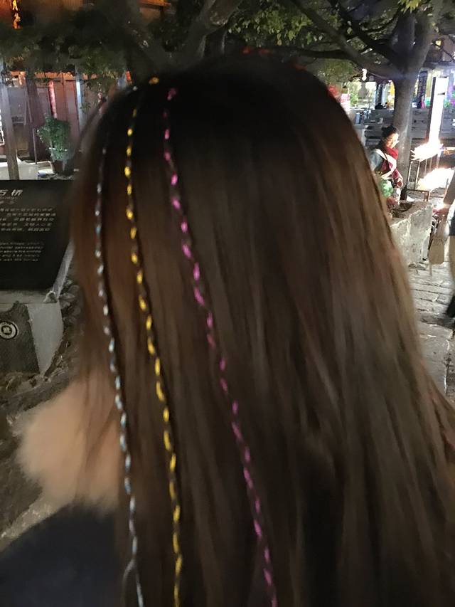 晚上的古城比较热闹,来来往往的人,到处琳琅满目,编了心心念念的小彩辫,然后逛吃逛吃,最后在狮子山附近的客栈,看整个丽江古城的夜景。路过 大冰的小屋,大冰不在,三个鼓手,一间小屋,围成三四层的坐,我感受不到情怀,浓浓的明星效应在挥发。