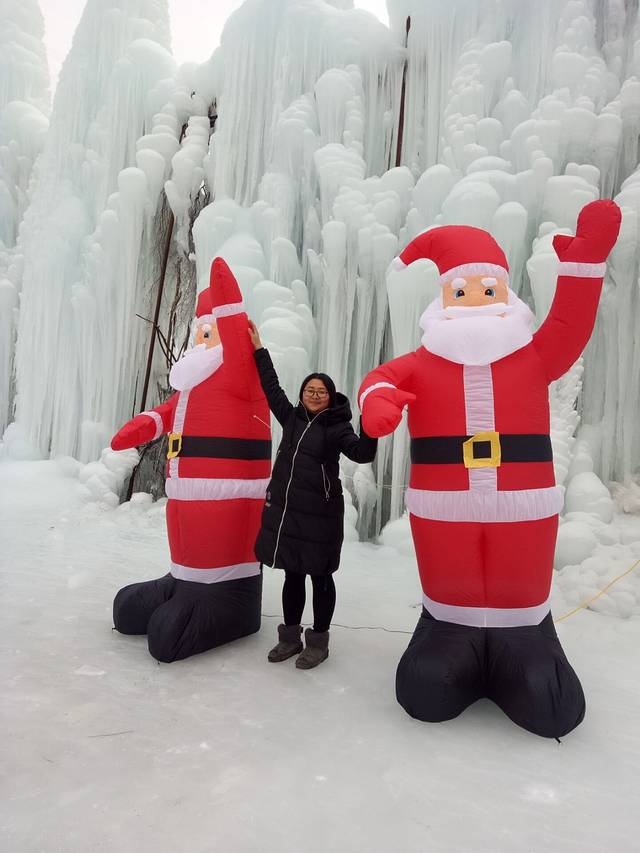 广场上的圣诞老人,远看小小的,近看比自己还要高哦