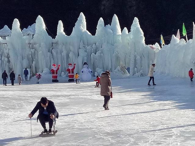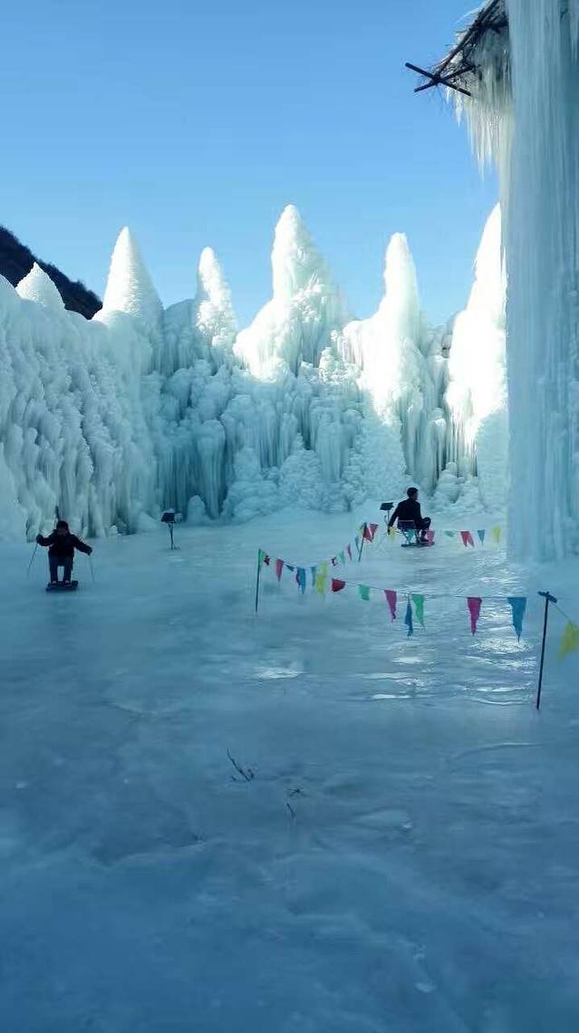 一年到头,终于迎来的冬季的小小假期,宅在家里放眼望去全是雾霾,那么来一次说走就走的旅行,远离城市,告别雾霾,朋友们驱车来到小山村———兴隆县大水泉乡迷子地村,天是蓝的,云是白的,让你眼前一亮的是巨大的“红石谷冰峰”,这里是人工建筑而成的,我不得部感叹人的力量是难以想象的!在景区门外开给人的感觉没有那么大,但是走进冰峰,眼前一亮,是一个大大的滑雪场,无论是小孩还是老人都热衷于滑冰的速度与激情,让我感动的是有远方而来的客人一遍一遍又一遍的坡道滑冰。大大的圣诞老人和雪人!还有恰到时节的圣诞树,听说圣诞节的时候还送的平安果,可惜没有赶上,但是我们却赶上了晚上的冰灯世界!地地道道的农家饭,无论是环境还是菜品都是让人留恋往返,吃不够,农村的土炕坐上去很暖和,不过时间原因没有居住听说有一种冰火两重天的感觉,哈哈,但是看到村子里有很多的酒店、旅店,说是有空调卫生间,取暖效果还是不错的。不多说啦,赶紧上图!