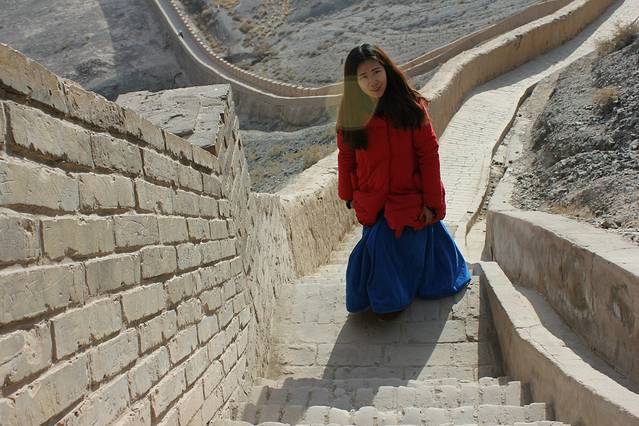 离开天下第一墩,第二站去悬臂长城,司机师傅介绍悬臂长城总长750米,对于爬过八达岭的人,我还是觉得爬上去没问题,可是当我爬上一半的时候我发现我太天真了,首先这边海拔有一点高,其次我的相机和三脚架实在不轻,于是我爬爬,停下来照照,最终还是气喘吁吁的爬到顶了。