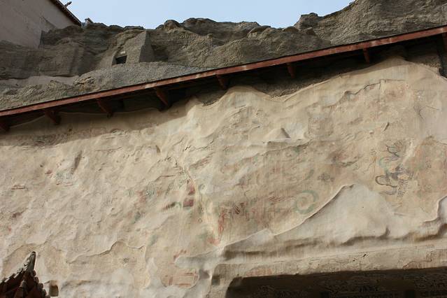 里面不让拍照,我就只能在外墙找一些残画拍拍,留纪念,这些壁画现在虽然破烂了,但是能想象出当初是如此精美的