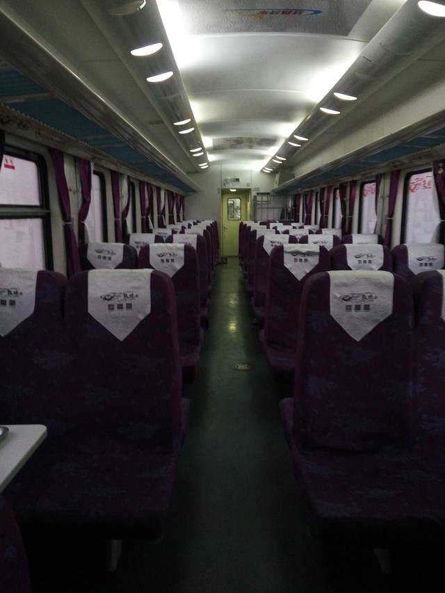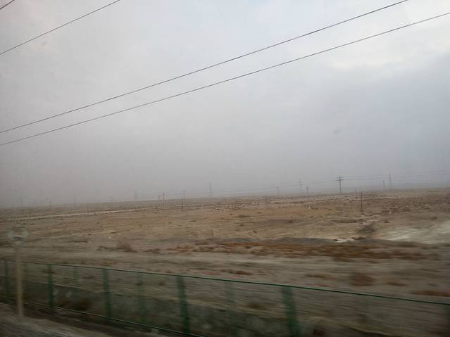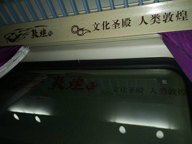 敦煌号,是北京始发终到敦煌的,在银川人就下的差不多了,我那个车厢算我就三个人,想怎么换座看风景都可以。其实也无风景可看,无非就是戈壁戈壁戈壁,一望无际的戈壁