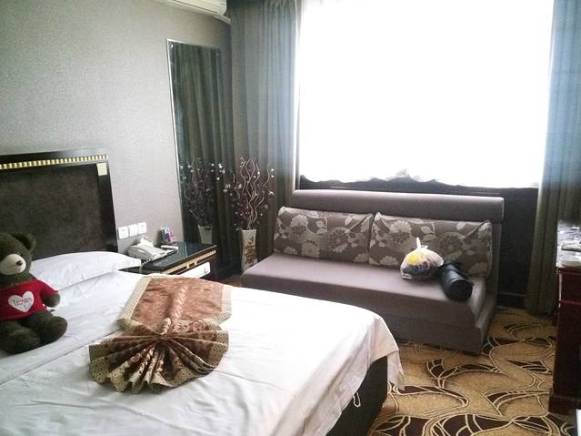 到了敦煌火车站我坐的12路公交车到市区3元,到市区后打车5元到达敦煌饭店,敦煌饭店是3星酒店,旺季房价在五六百,而淡季89一晚的大床房,真是比北京小旅馆还便宜,有人说,旅游城市就是2个月要挣出一年的钱,此次淡季出游除了冷点我都满意的很,但是作为东北姑娘,冷我还是扛得住的。