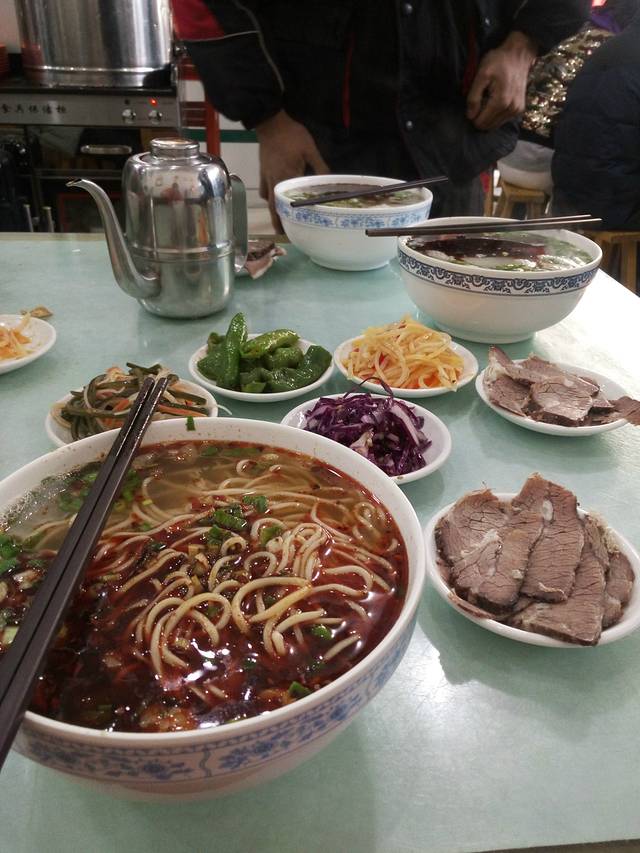 到了兰州火车站后,闺蜜的老公早在火车站等着我了,请我吃了兰州正宗的牛肉面,这家店别看点小,里面座无虚席