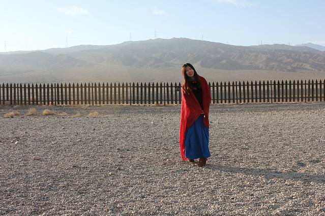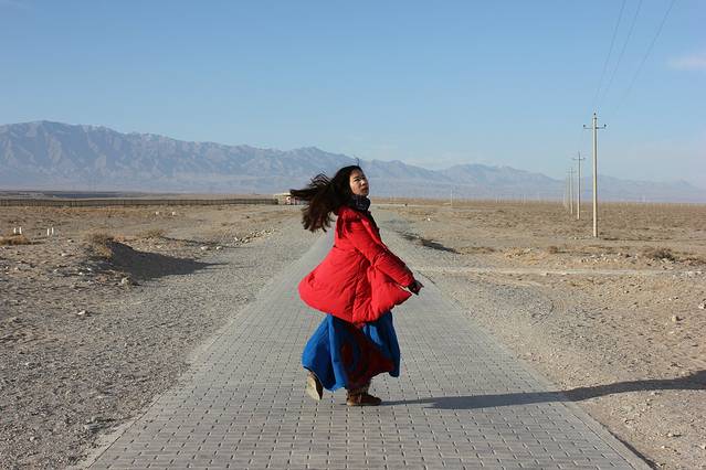 本人东北姑娘,现于北京工作。这次独自西北行由闺蜜婚礼而起,她12月24日的婚礼在老家甘肃革命圣地会宁举行,由于毕业时的约定,我决定不错过我们中第一个结婚的她的婚礼。后来在计划中,深知去一次西北不容易,索性请了5天假,连着前后4天的周末,9天我来了一次说走就走的旅行。其实去西北是我从小的梦,也许是小时候对茫茫戈壁的好奇,也许是对书上莫高窟壁画的惊叹,也许是对鸣沙月牙的憧憬,不论也许什么,我就是去实现了我的一个梦。一个人旅行也是我一直向往的,一个人在无人认识的城市,听着不同的口音,吃着不合口的饭菜,看不一样的人生。就这样,所有的机缘巧合,我背着相机、三脚架,拖着个装满我满是民族风衣服的行李箱,再无其他烦恼杂念的离开了被雾霾笼罩的大首都