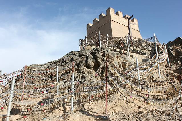 因为公交只有到关城景区的,关城到其他景点又很远,所以今天一天我包了头一天师傅的车去天下第一墩,悬臂长城和关城,150元。这三个地方的门票是通票,淡季100元。去一个景点后票一定留好。